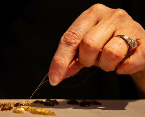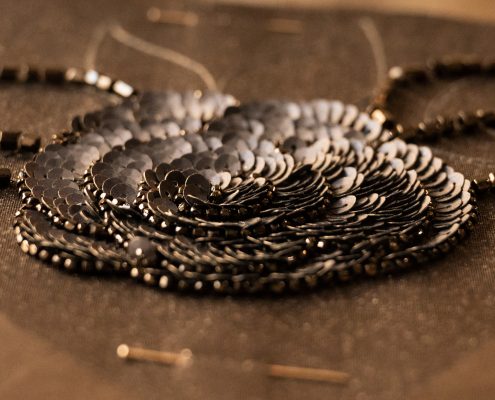 Pour les particuliers, elle propose des cours dans son atelier Rêve de broderie, près de la presqu’île de Lyon. Initiation à la broderie traditionnelle, cours de broderie d’art ou masterclass, l’artiste est à l’écoute de ses élèves pour les guider vers la réussite de leurs objectifs. Des premiers points jusqu’aux réalisations d’exception destinées à la haute couture ou à la création artistique, Elisabeth Gasbarre guide les apprenants avec générosité et bienveillance.